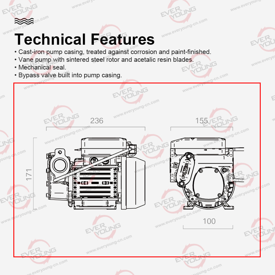 • Cast-iron pump body finished with anti-corrosion paint.