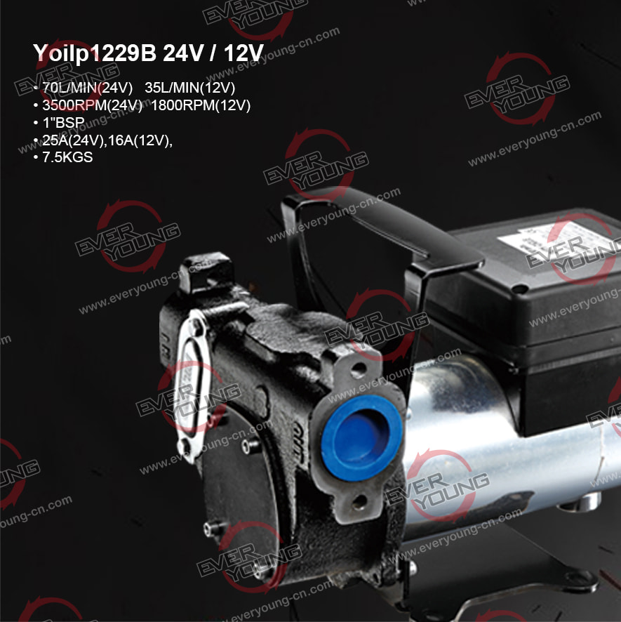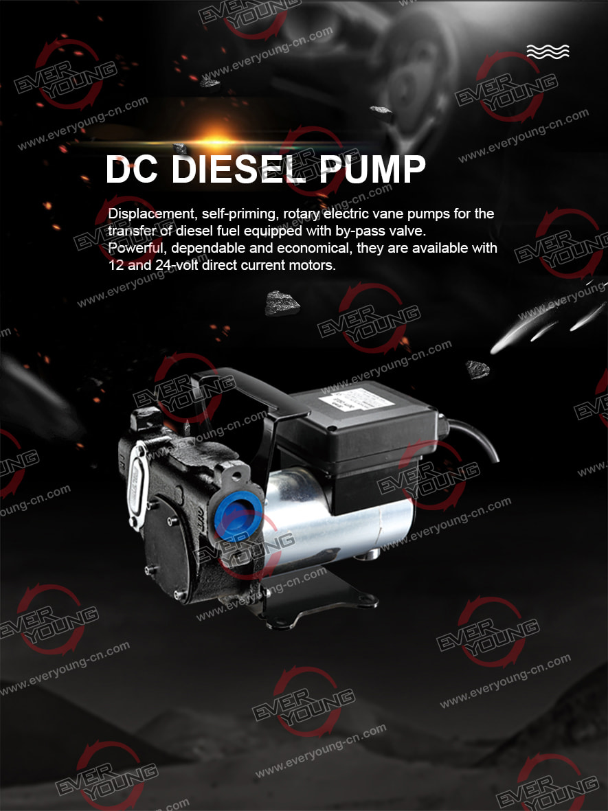Displacement, self-priming, rotary electric vane pumps for the transfer of diesel fuel equipped with by-pass valve. Powerful, dependable and economical, they are available with 12 and 24-volt direct current motors.
