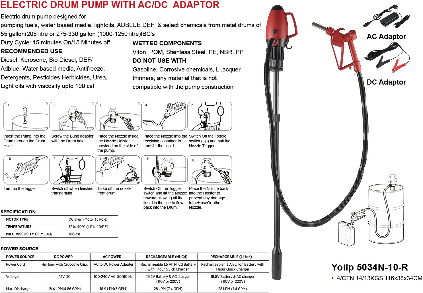 | Power Cord | 4m long with Crocodile Clips | AC to DC Power Adapter | Rechargeable 1.5 Ah Ni Cd Battery with1 hour Quick Charger |