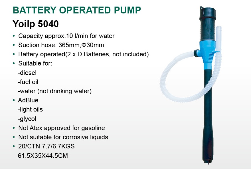 - Suitable for: diesel, fuel oil, water (not drinking water), AdBlue, light oils, glycol