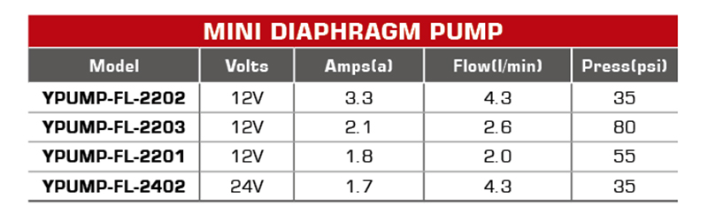 We always perfect and strengthen our quality control system to make our DIAPHRAGM PUMP YPUMP-FL-2201/2202/2203/2402 conform to advanced international standard.Most of our DIAPHRAGM PUMP YPUMP-FL-2201/2202/2203/2402 and other products are approved by UL, CSA,GS, CE, ISO9001, ISO14001, And also have lots of patent certificate for lots of products.